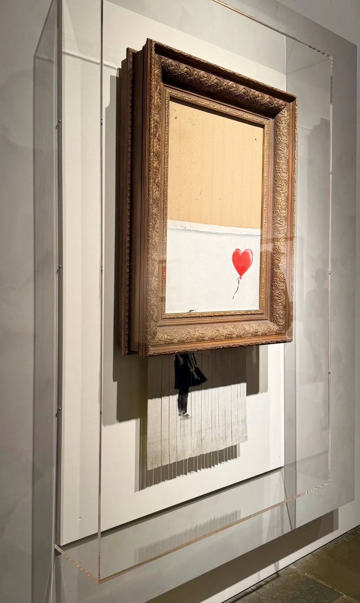 Banksy, Love Is in the Bin (2018). Spray paint, acrylic paint, canvas, cardboard, vintage frame.