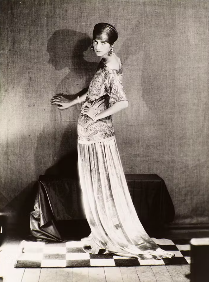 Man Ray, Peggy Guggenheim wearing a Poiret dress (1924).